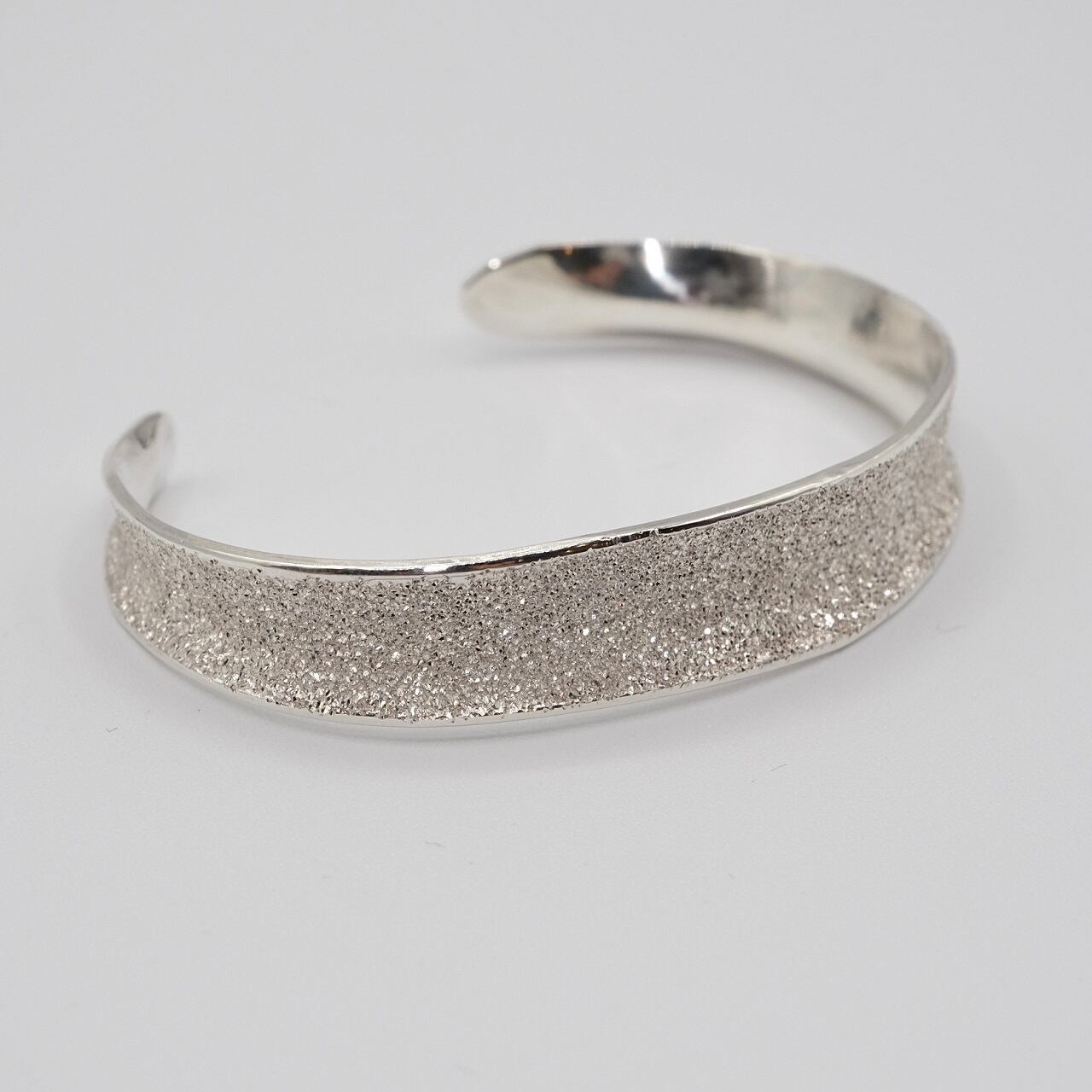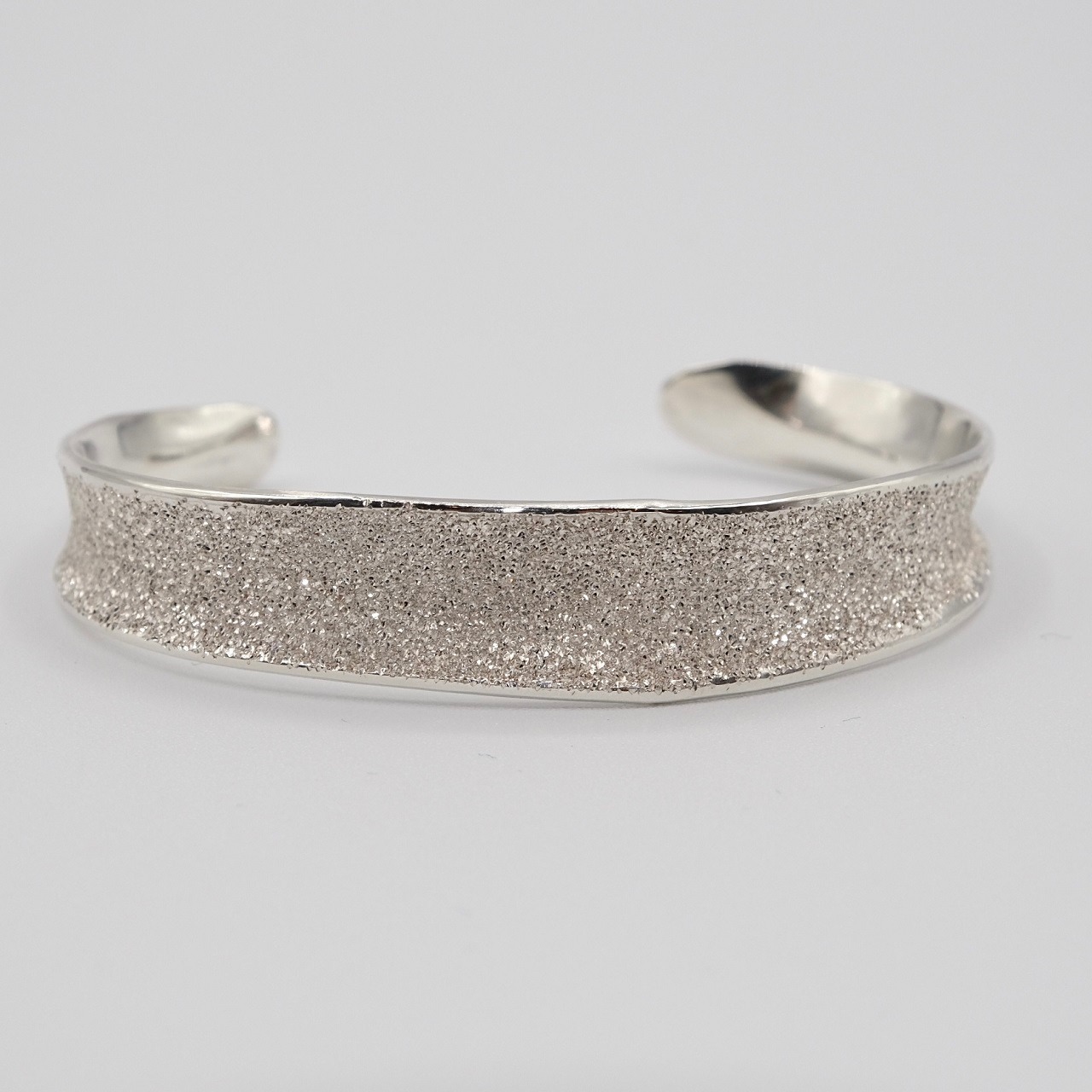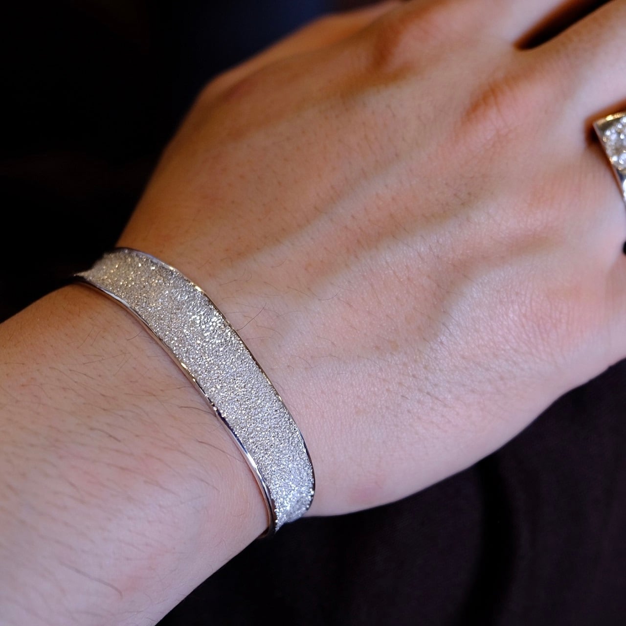 掘り下げた表面にスターダストを施し、バングルの淵は鏡面仕上げ。
