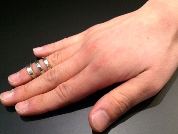 内側が艶消し、外側が艶ありで、デザイン性がとても高く、指通りもなめらかな着け心地を体感できます。